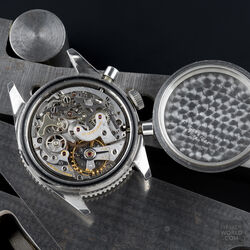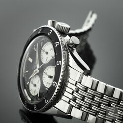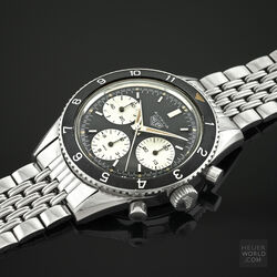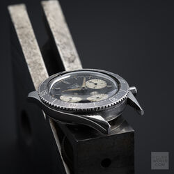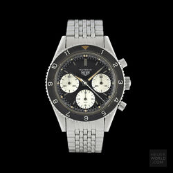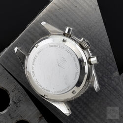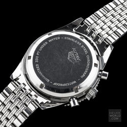 The 2nd execution Autavia shares the case and bezel with the 1st execution i.e 37mm diameter with screw back and wide bezel with lume triangle at 12. The key change was the revised dial with smaller sub registers and applied metal hour markers. The hour and minute hands are steel dauphine with slightly narrower lume insert compared to the 1st execution. The watch is powered by an Ed Heuer signed Valjoux 72 movement. The caseback is also signed Ed Heuer and the lug width is 19mm.