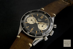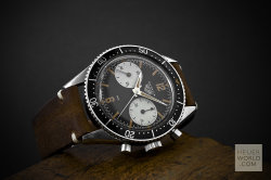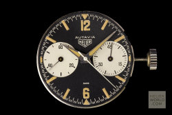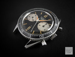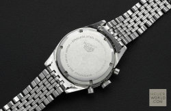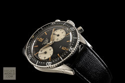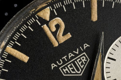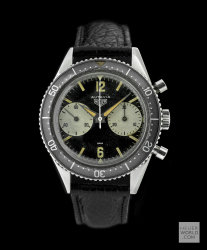 Launched in conjunction with the 2446, the first 3646 has the distinctive large sub registers and applied lume hour markers made even more special with the applied numerals at 6 and 12. Powered by a Valjoux 92 movement signed Ed Heuer or Heuer Leonidas. Caseback is signed Ed Heuer.