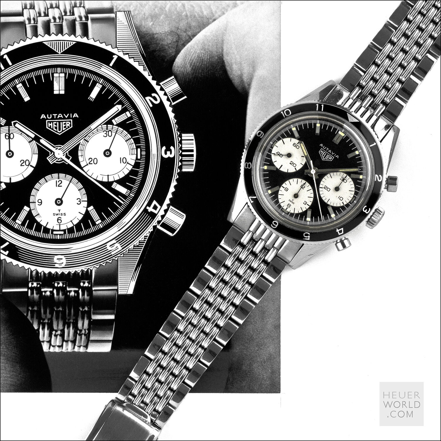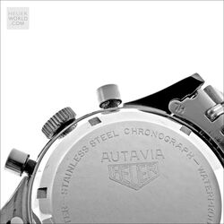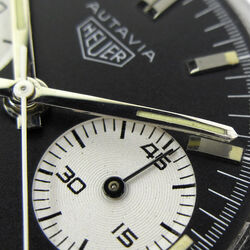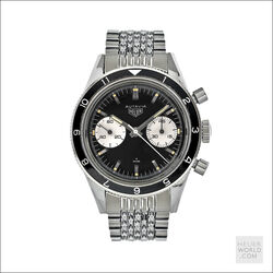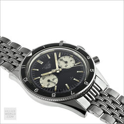 Same features as the 2446 3rd execution with screw back case, rotating bezel and plain steel hands. Bezels options were the hour, minute/hour and tachymeter. Valjoux 92 movement and caseback signed Heuer Leonidas. 37mm diameter case with 19mm lug width.