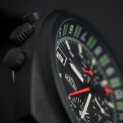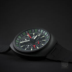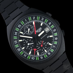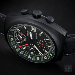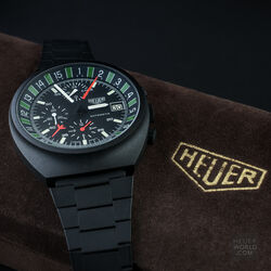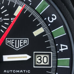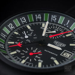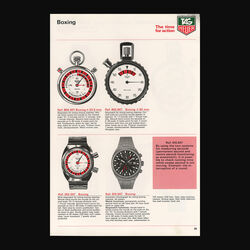 The Heuer Boxing watch only ever appeared in the 1986 TAG Heuer "The time for action" catalogue. Due to the tri-tone catalogue picture and the fact that until 2010 no example had been seen, collectors had no idea what it actually looked like and even doubted that it was even made. That was until this example was discovered and as of 2018 only one other example has come to light. It has a black PVD finish to the top case and powered by the Lemania 5100 movement. The dial features the outer scale that measures a 3 minute round and 1 minute break to the maximum of a 15 round match. A very specific sports watch but then Heuer (now TAG Heuer as this was in 1986) had a long history of sports timing devices and this was yet another example.