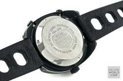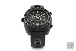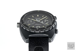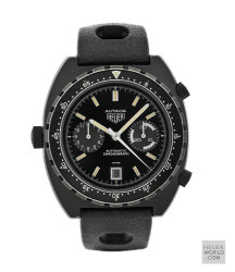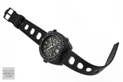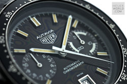 The Autavia 113603 really is the last Heuer branded Autavia and was produced around 1985, the time the company changed hands and became Tag Heuer. Three different PVD finishes were used (black, pewter and olive green) as well a gold plated reference and all came with the optional matching coated jubilee bracelet. The PVD coating, although used since the later part of the 1970's was still not a perfect finish and they did not wear very well. Consequently, many examples seen today show signs of fading and chipping. Nevertheless a mint example is a beautiful site and suits this tool watch perfectly. The back case was engraved with the Heuer logo and features the reference number. The signed crown and fluted pushers were also PVD coated.