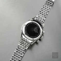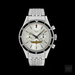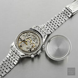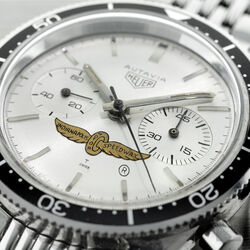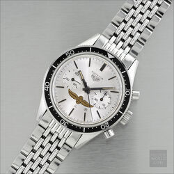 Another rare and unusual variation of the 3rd execution 3646. This reference was a special order silver dial with the Indianapolis Motor Speedway logo (Wing and Wheel) with applied steel hour markers and plain steel hands with the hour hands being shorter than the standard 3rd execition 3646 hour hand. It is the only all silver Autavia dial and the addition of the unique Indy logo make this a highly desirable watch amongst collections.