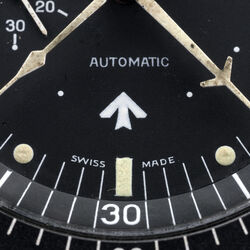 This is a rare Australian military watch originally attributed to the Royal Australian Navy (RAN) however with more examples coming to light (14 in total) and one with decommissioning papers it is now believed to have been issued to the Royal Australian Air Force (RAAF). It shares its DNA with the SAAF cal. 5012. The RAAN version is slightly later circa. 1981 with the upgraded cal. 5100 movement and Broad Arrow on the dial.