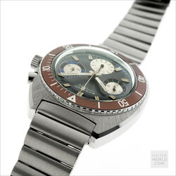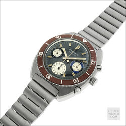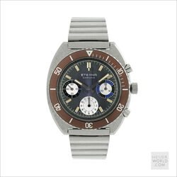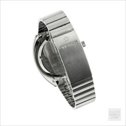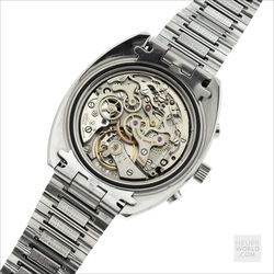 The Eterna Chrono 154 FTP is powered by a manual wind Eterna signed Valjoux 726 movement housed in a 40mm wide case with rotating bezel and serial number 5538829 clearly visible on the backcase. It is fitted with a unique Eterna signed steel bracelet reminiscent of the late 1960’s. The bracelet is not full length and will fit a 21cm wrist. The overall condition of the watch is excellent with a mint dial, hands and bezel.
