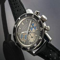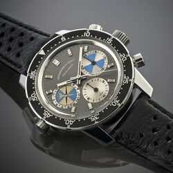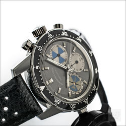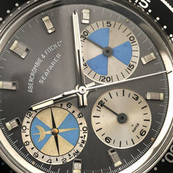 Abercrombie & Fitch Seafarer in a modified Autavia 2446c compressor case with metallic grey dial, straight steel hands and rotationg bezel.