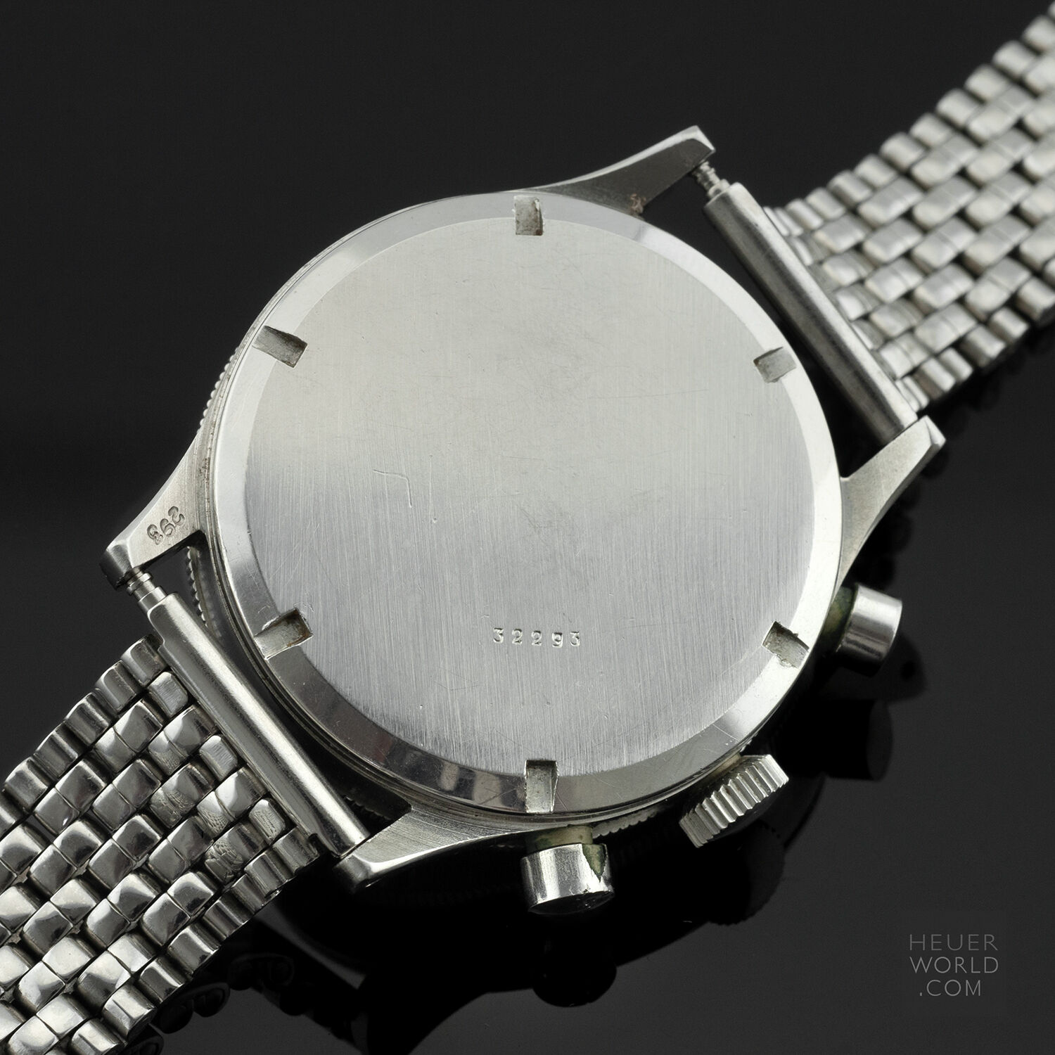 The Mk4 dial is the most common of the reference 960 with refined features that carried through to the next reference, the 995. The tachymeter scale is now 60 to 750 with strong red degree scale and red triangle in the minute register. The deco logo has WATERPROOF printed below and SWISS MADE printed on the bottom edge. Early examples have lume filled cathedral hands which changed to the syringe style hour and minute hands.