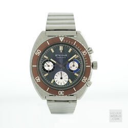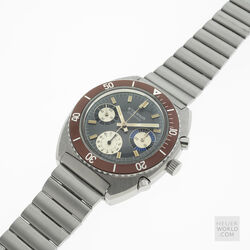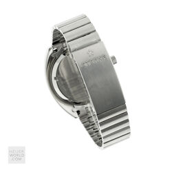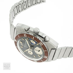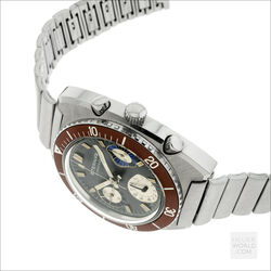 The Eterna Chrono 154 FTP is powered by a manual wind Eterna signed Valjoux 726 movement housed in a 40mm wide case with rotating bezel and serial number 5538829 clearly visible on the backcase. It is fitted with a unique Eterna signed steel bracelet reminiscent of the late 1960’s. The bracelet is not full length and will fit a 21cm wrist. The overall condition of the watch is excellent with a mint dial, hands and bezel.